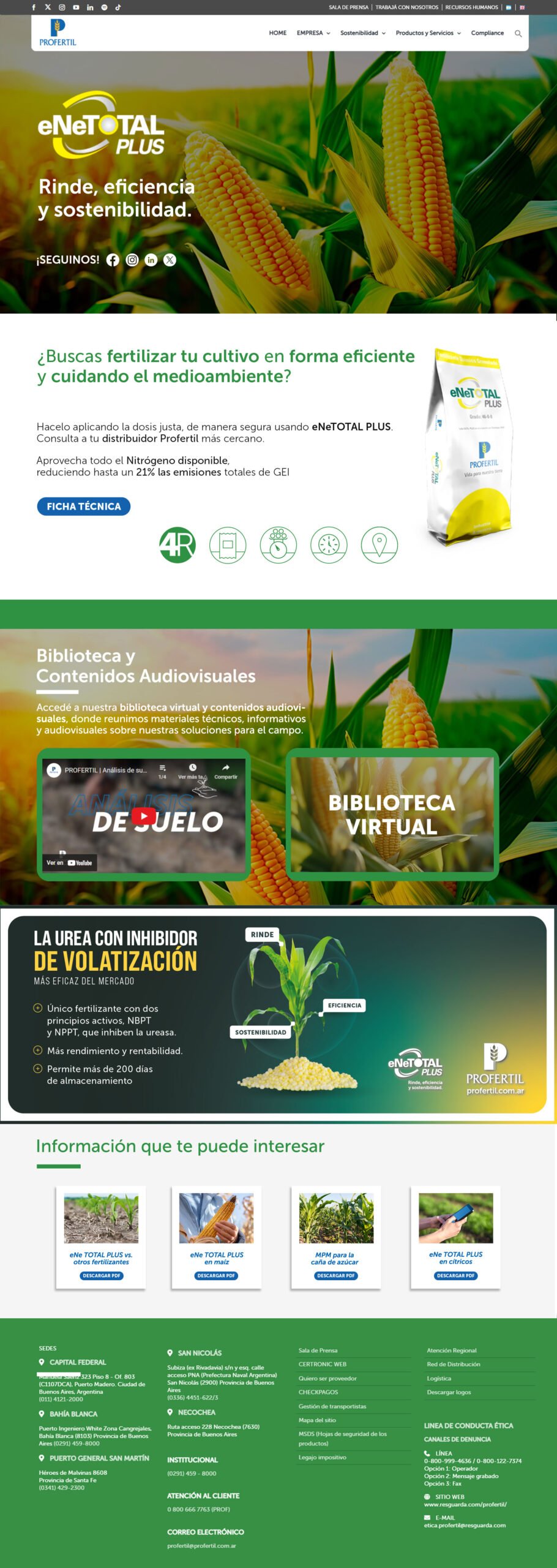 Rediseño de la landing page utilizada como destino de las campañas publicitarias en Meta Ads para promover el fertilizante eNe TOTAL PLUS. El trabajo consistió en optimizar la estructura visual, la claridad del mensaje y la experiencia del usuario, logrando una pieza más moderna, funcional y orientada a conversión.